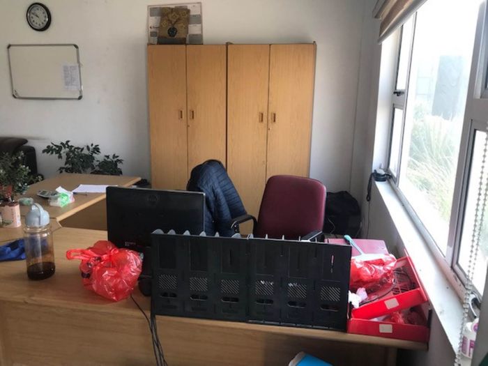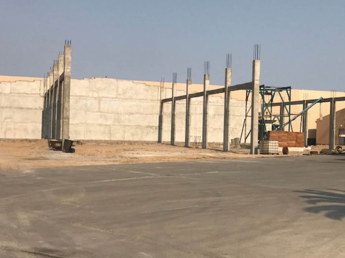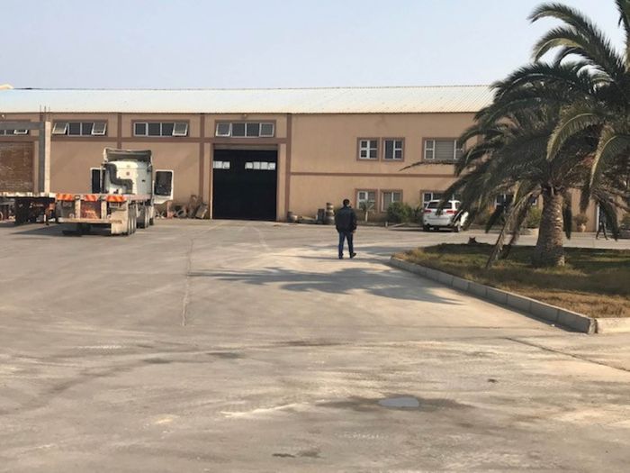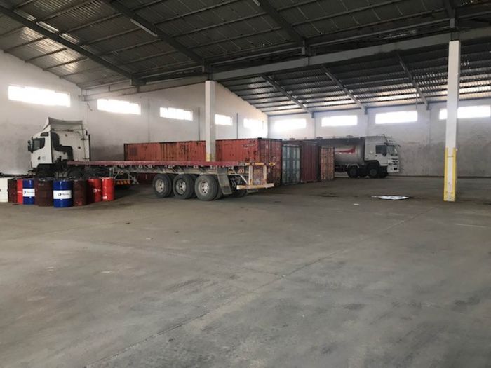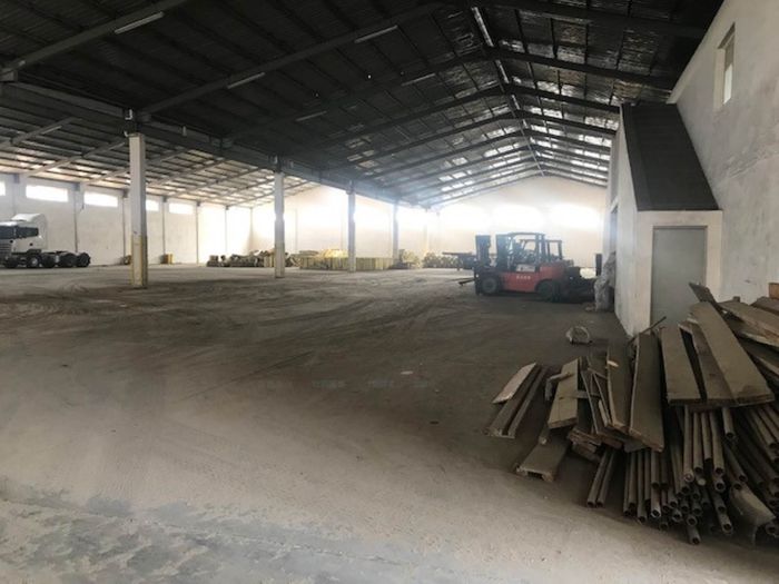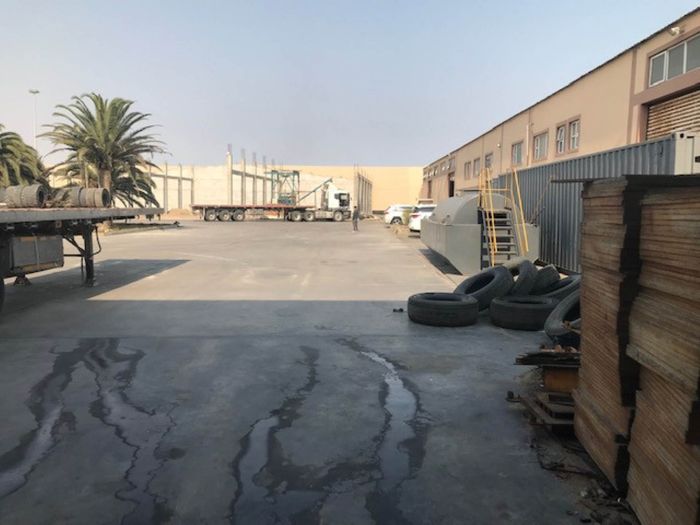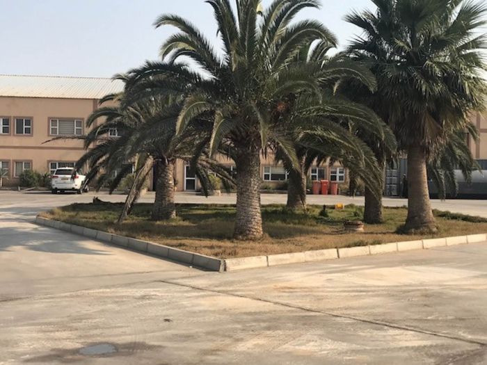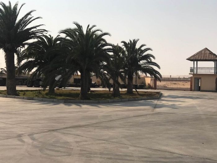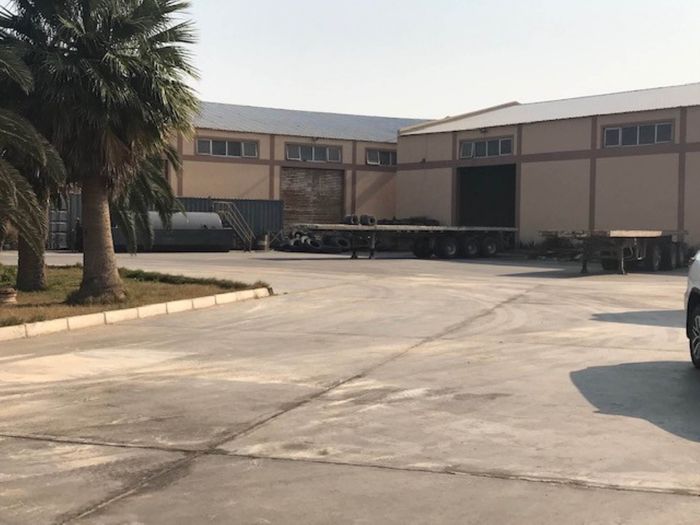 Double-story industrial property in Walvis Bay, 13081 m² land, 6155 m² floor size, includes offices, warehouse, workshop, and staff quarters.