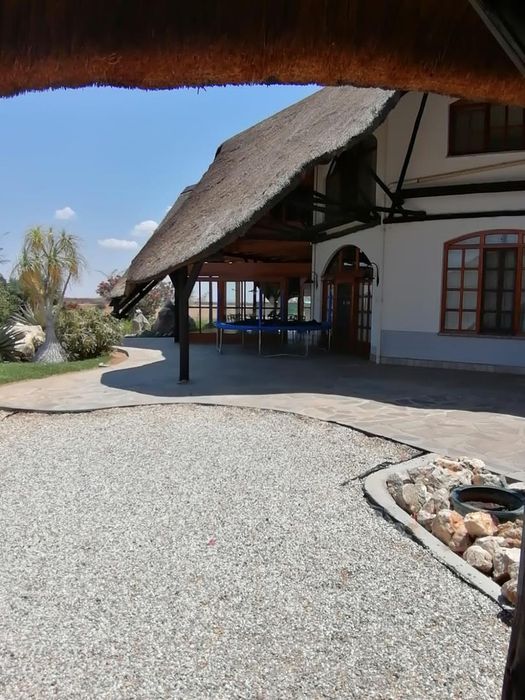 Experience remote safari living and tourism potential in Namibia's scenic plains near Wilhelmstal, with a lapa and pool plus two private airstrips, including a five-bedroom thatched main residence.