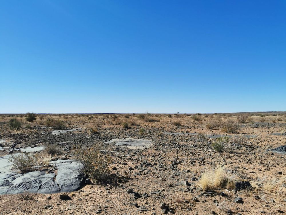The prevailing climate of this area is semi-arid, with hot summers and cool to warm winters. The farm is situated in a summer rainfall area, with approximately 98% of the rainfall occurring between October and April. The average annual rainfall is 50-100 mm.