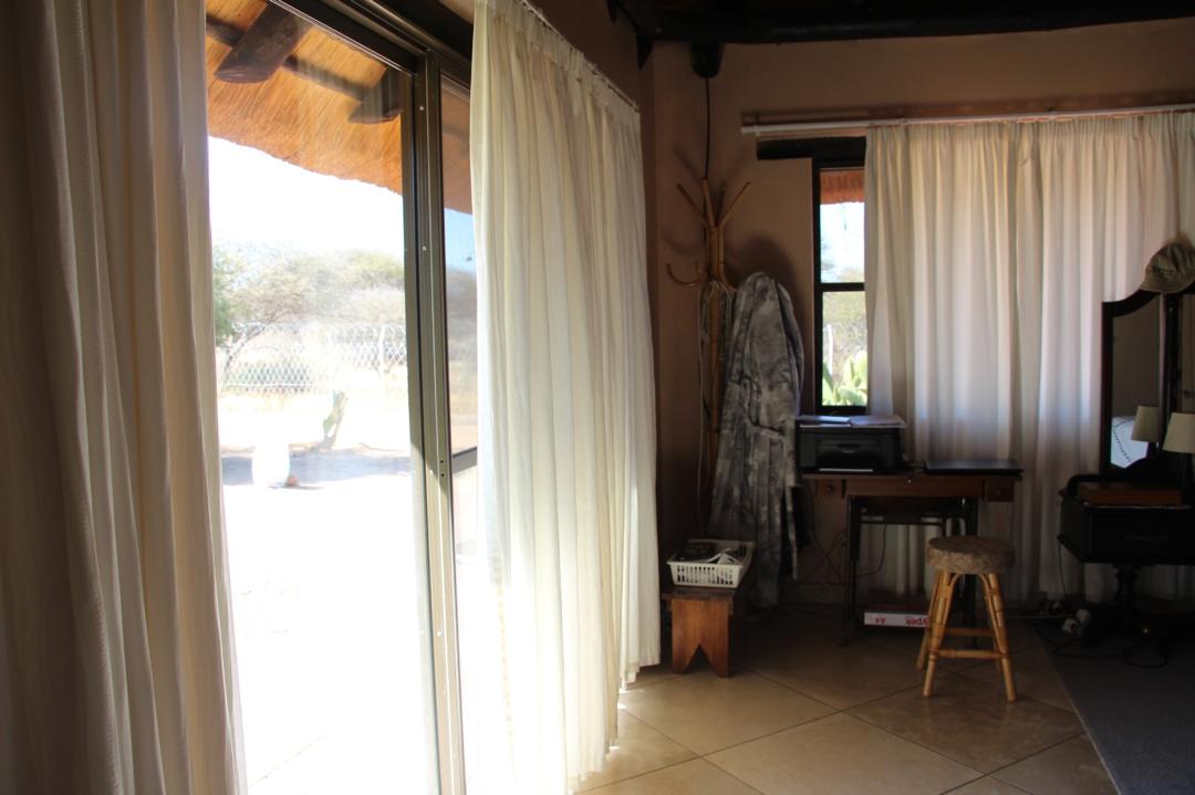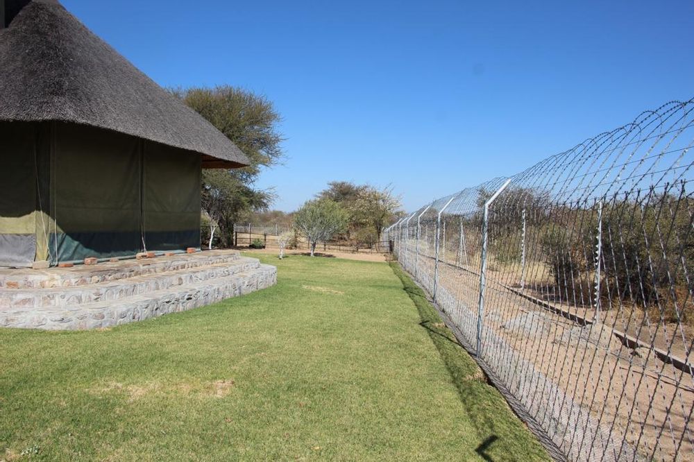 The plot is fairly leveled with scattered topography of sand and rock. The original land is fenced with game-proof fencing. The owners pay a monthly levy to maintain the roads, the security of the estate, and other general maintenance.