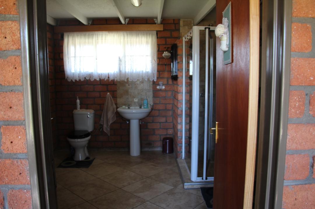 - Main Dwelling: 210 m2- Entrance, lounge with fireplace, dining area, kitchen with built-in cupboards and gas stove, scullery area, passage, three bedrooms with BIC, and two bathrooms with shower, WC, and hand washbasin each, respectively.