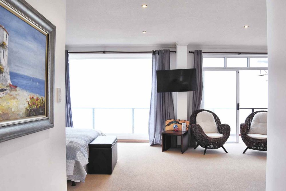 - A feature wall separates the lounge from the indoor BBQ/seating corner, which enjoys beautiful ocean views.