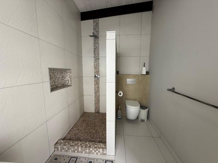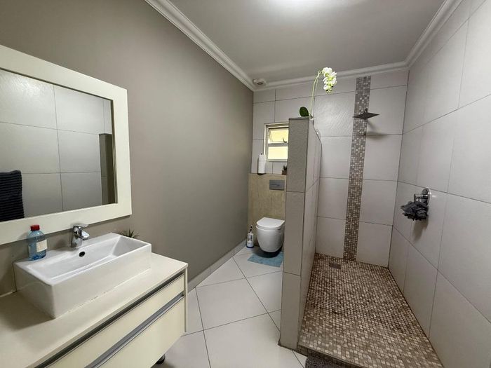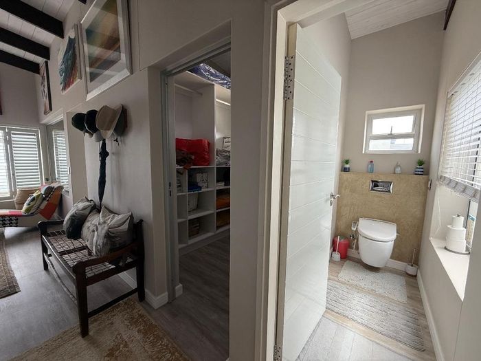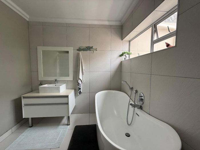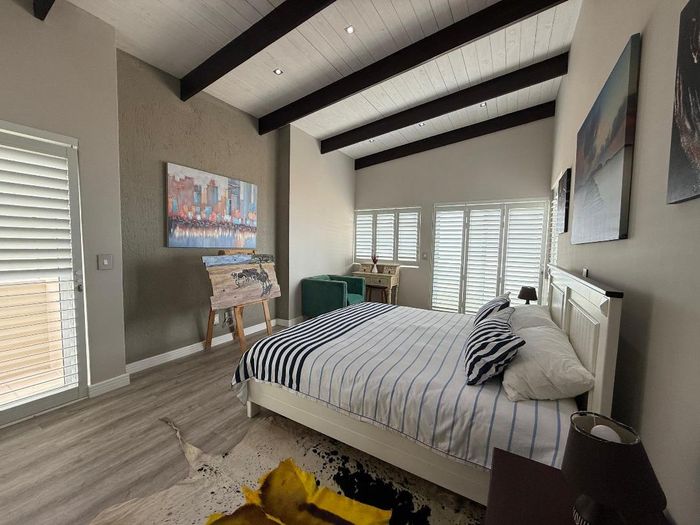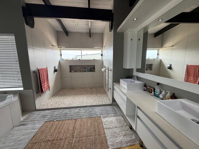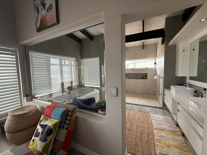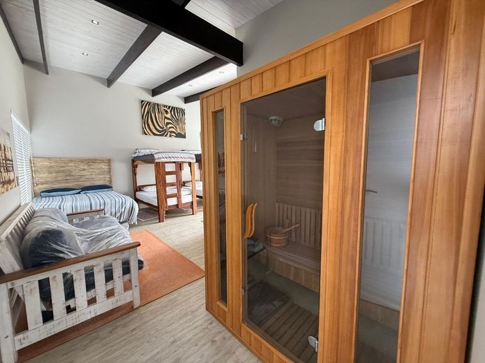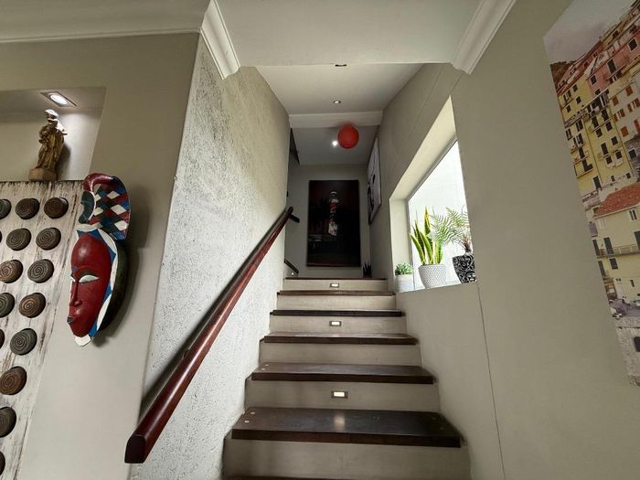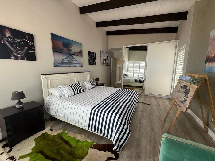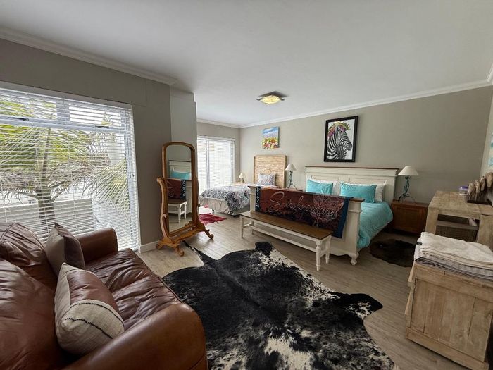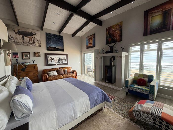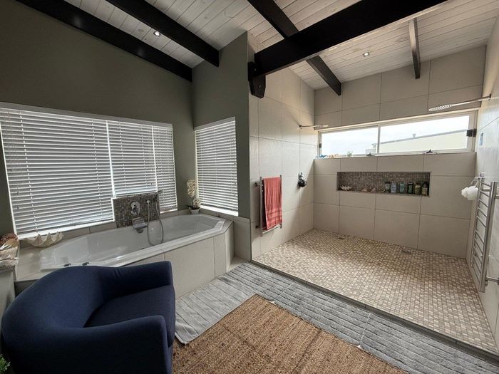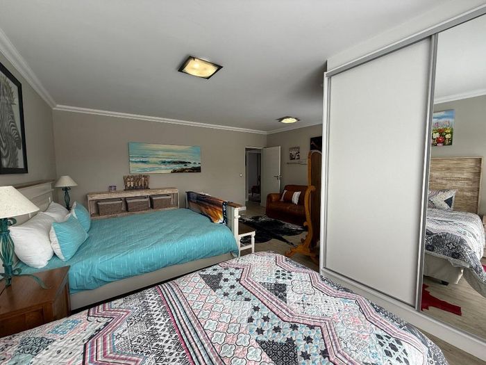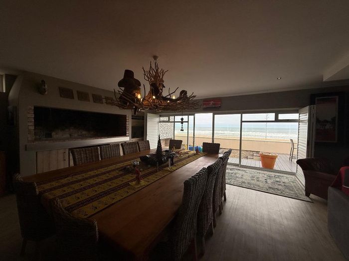 Overlooking the beach, this elevated triple‑storey retreat offers panoramic sea views and a private rooftop — perfect for entertaining with indoor/outdoor braai, sunken patio; five bedrooms.